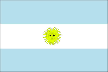 国旗:阿根廷国旗呈长方形,长与宽之比约为5:3。 阿根廷国旗