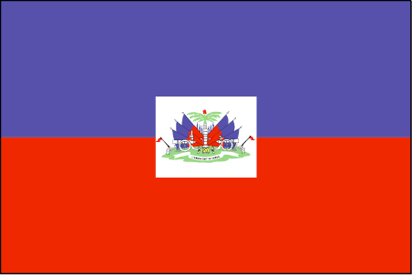 国旗:呈长方形,长与宽之比为5:3。由两个平行相等的横长方形组成,上蓝下红。旗面中央为白色长方形,其中绘有国徽图案。海地国旗的颜色源于法国国旗。镶国徽的国旗为官方用旗。