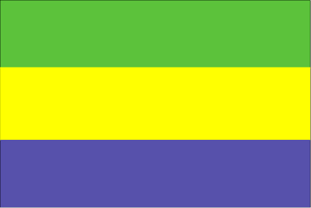 国旗:呈长方形,长与宽之比为4:3。自上而下由绿、黄、蓝三个平行的横长方形组成。绿色象征丰富的森林资源,加蓬号称“木材之国”、“绿金之国”;黄色象征阳光;蓝色象征海洋。