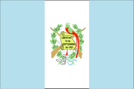 国徽: 呈圆形,蓝色圆面中间有一幅展开的轴卷,其上用西班牙文写着“1821年9月15日,自由”,以纪念危地马拉摆脱西班牙殖民统治获得独立。轴卷上栖息着一只绿色的“格查尔”鸟。这是危地马拉的国鸟,也称“自由之鸟”,被视为自由、爱国、友谊的象征。轴卷背后交叉着步枪和长剑,象征该国人民时刻准备捍卫祖国的自由。上述图案由月桂树枝环抱。