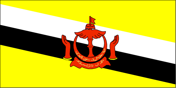 呈横长方形,长与宽之比为2:1。由黄、白、黑、红四色组成。黄色的旗地上横斜着黑、白宽条,中央绘有红色的国徽。文莱国旗1906年,当文莱还是英国的保护国时,就制作了文莱第一面国旗——呈长方形的黄色旗帜。旗帜上的黄色代表苏丹至高无上。后来为了纪念两位有功的亲王,苏丹决定在国旗上加了黑、白两条斜条。1959年文莱实现自治时制定了第一部宪法,宪法规定把文莱的国徽图案绘制在国旗中央。1984年1月1日,文莱宣布完全独立,国旗沿用至今。