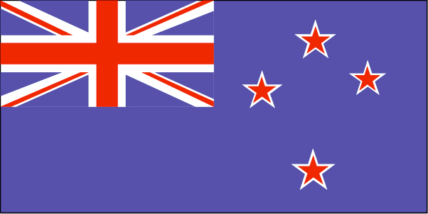 新西兰国旗为长方形,长宽之比为2:1。旗地为深蓝色,左上方为英国国旗,右边有四颗镶白边的红色五角星,四颗星排列均不对称。新西兰是英联邦成员国,“米”字图案表明同英国的传统关系;四颗星表示南十字星座,表明该国位于南半球,同时还象征独立和希望。